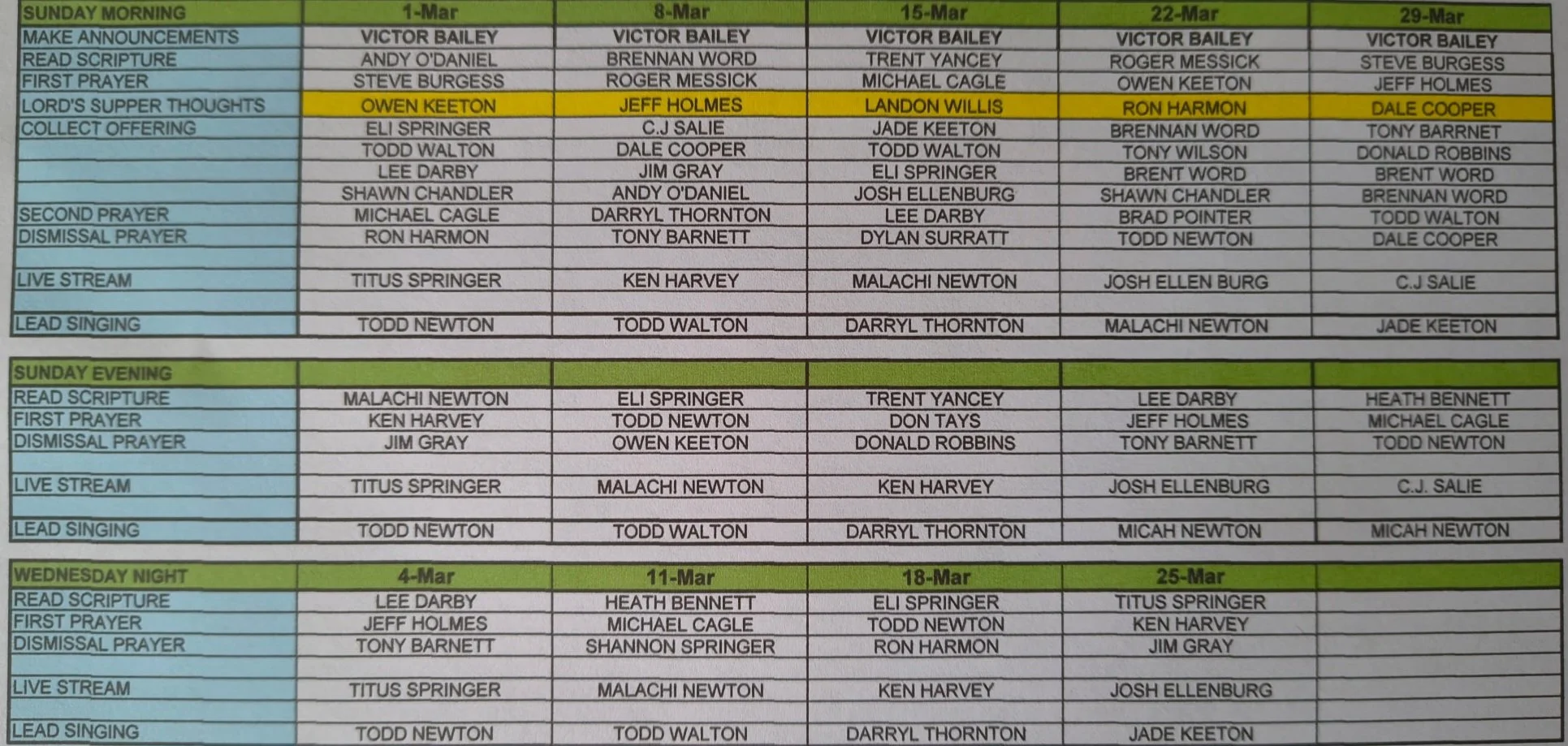 Wednesday Night Class